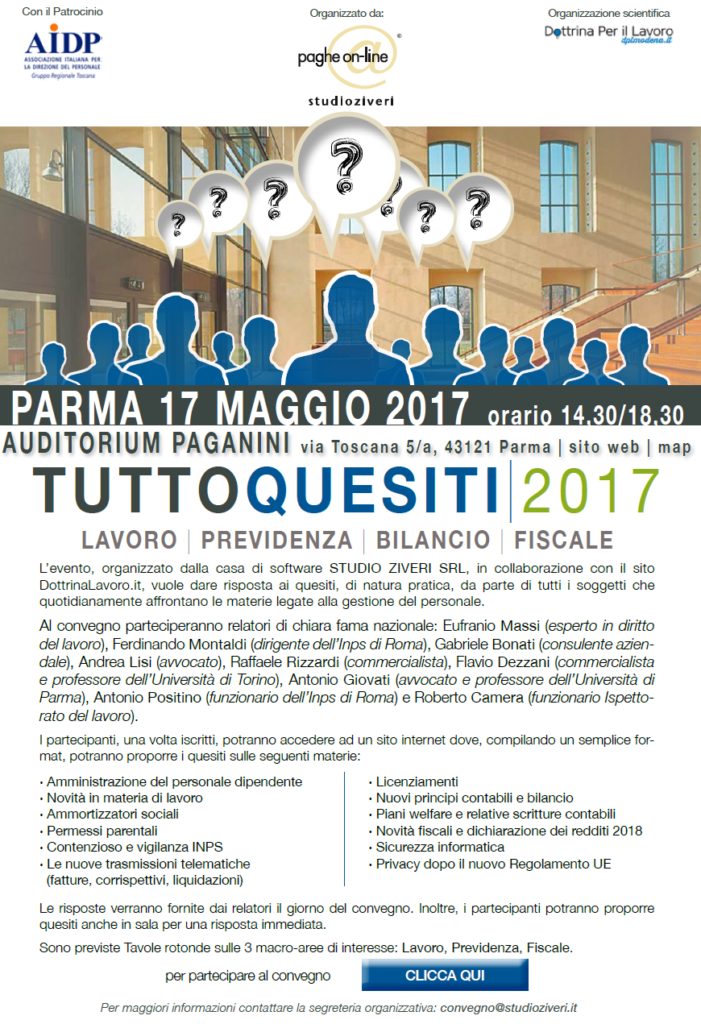 Pubblichiamo i video delle risposte ai quesiti formulati durante l’evento TUTTOQUESITI 2017, tenutosi a Parma il 17 maggio scorso.