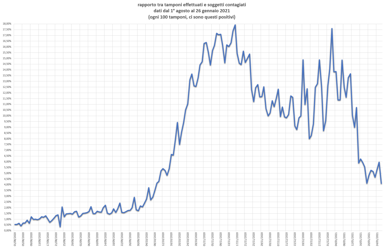 Dottrina Per il Lavoro: Osservatorio contagi da Covid del 26 gennaio (4,12% rapporto tamponi/contagi)