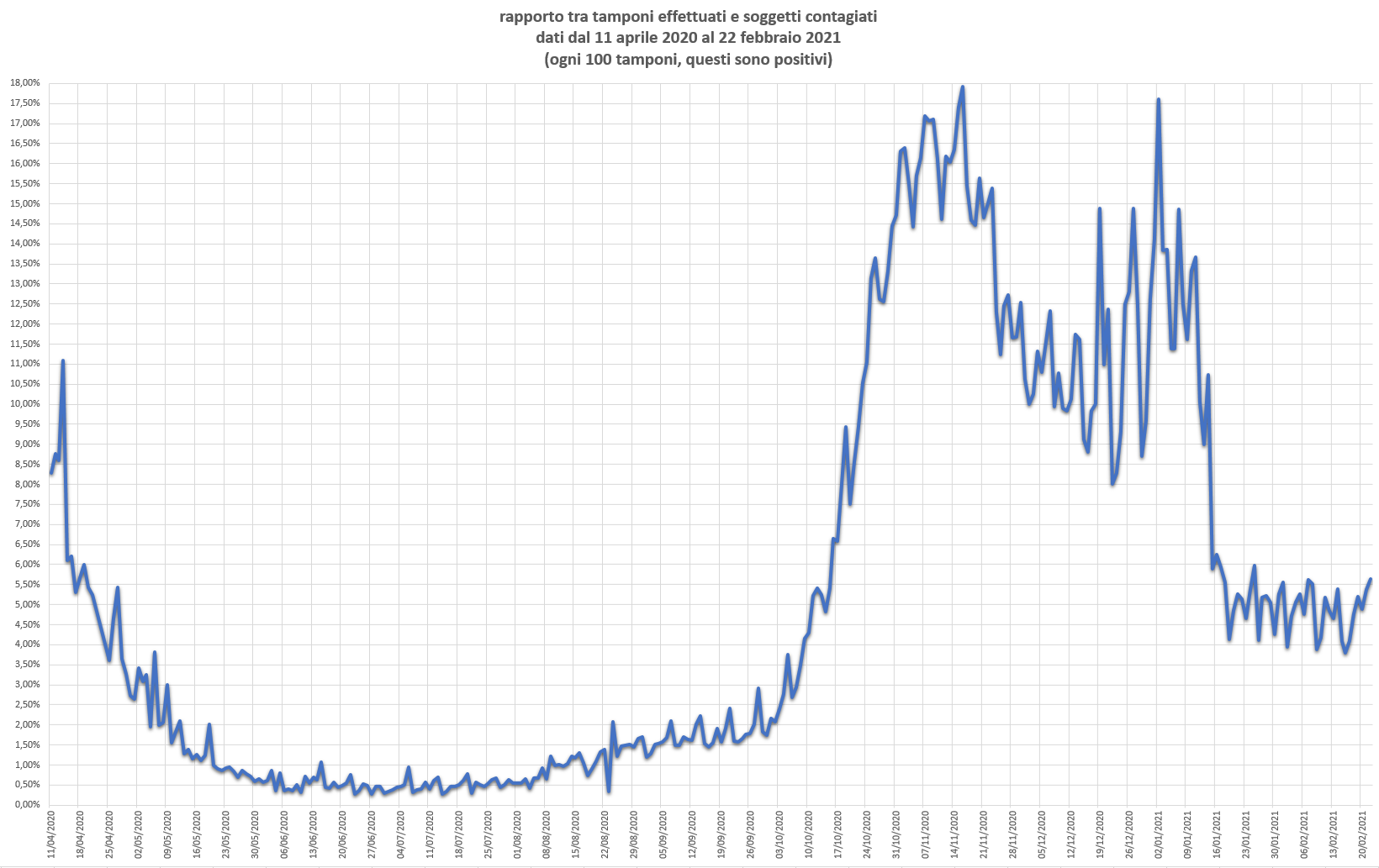Dottrina Per il Lavoro: Osservatorio contagi da Covid del 22 febbraio (5,64% rapporto tamponi/contagi)