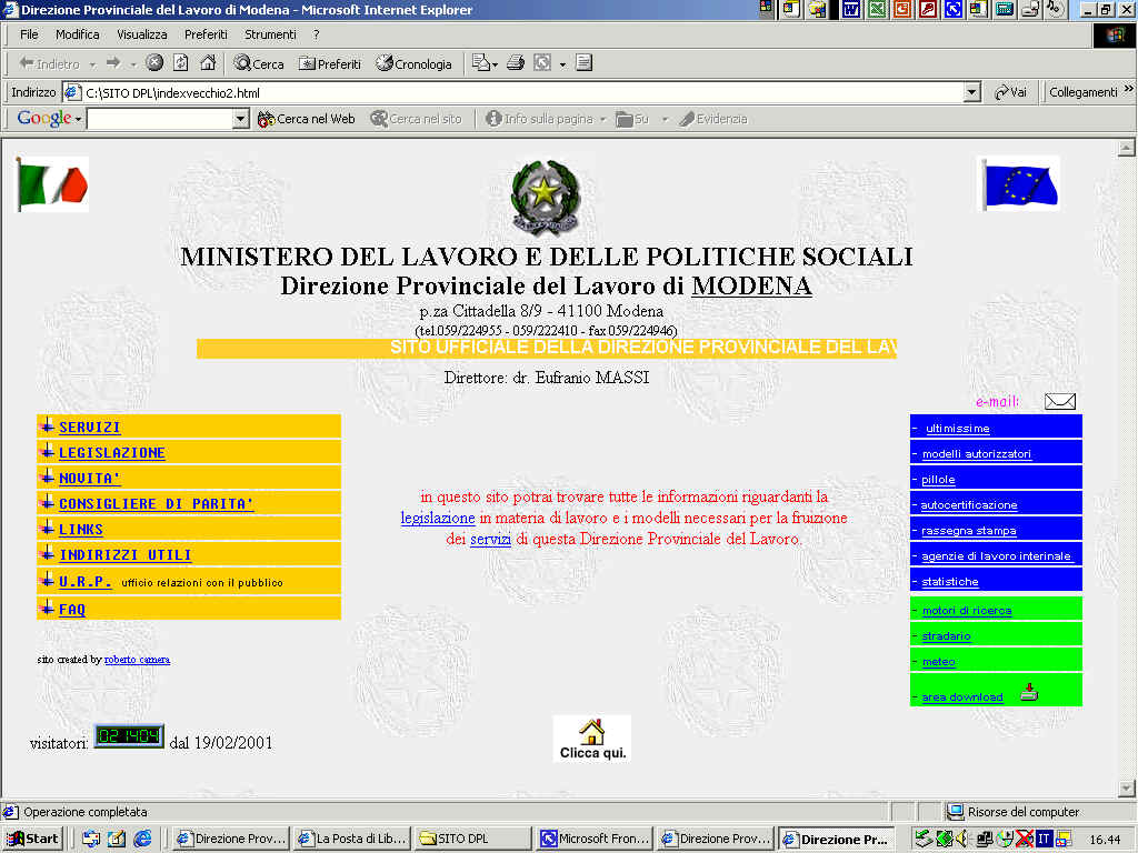 Inizialmente il sito fu previsto – grazie al dott. Eufranio Massi – all’interno dell’Ufficio Relazioni con il pubblico (URP), dell’allora Direzione provinciale del lavoro di Modena, per fornire un servizio innovativo e utile per tutti coloro che dovevano applicare il diritto del lavoro. Negli anni è progredito, uscendo da un’ottica territoriale e raggiungendo rapidamente i computer di migliaia di persone sparse in tutta Italia. Così facendo, si è dovuta “spogliare” dalla veste istituzionale e intraprendere un nuovo cammino con il nome attuale: Dottrina Per il Lavoro (www.dottrinalavoro.it).