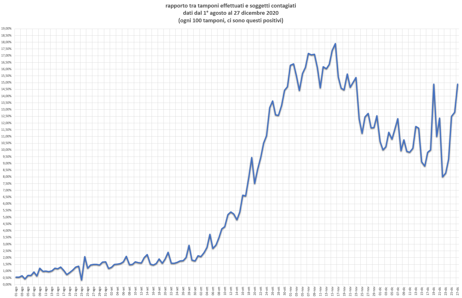 Dottrina Per il Lavoro: Osservatorio contagi da Covid al 27 dicembre 2020 (14,89% rapporto tamponi/contagi)